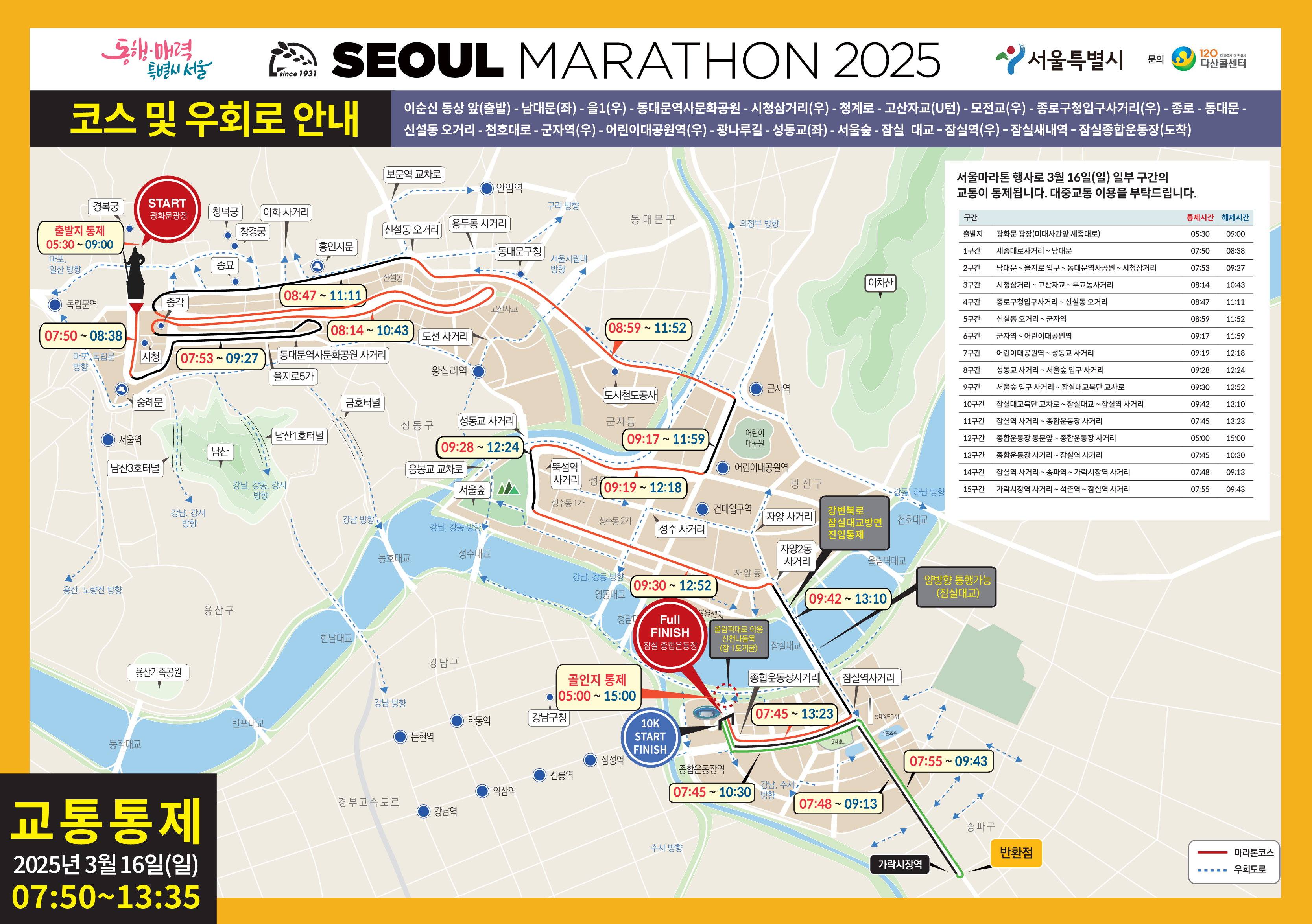 1. 서울마라톤 교통 통제 구간 및 시간 상세 안내