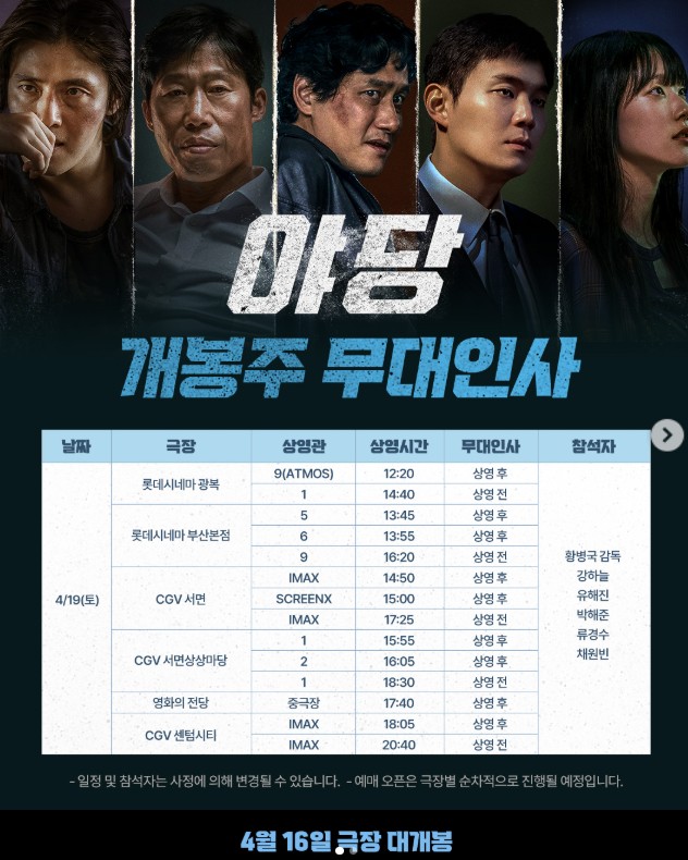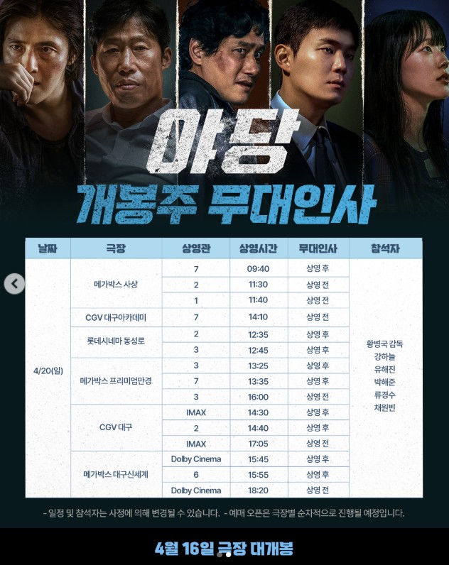 영화 야당 무대인사 일정 확인 시, 극장별 공지사항을 주기적으로 체크하세요. 일정은 배우 스케줄에 따라 변동될 수 있습니다.