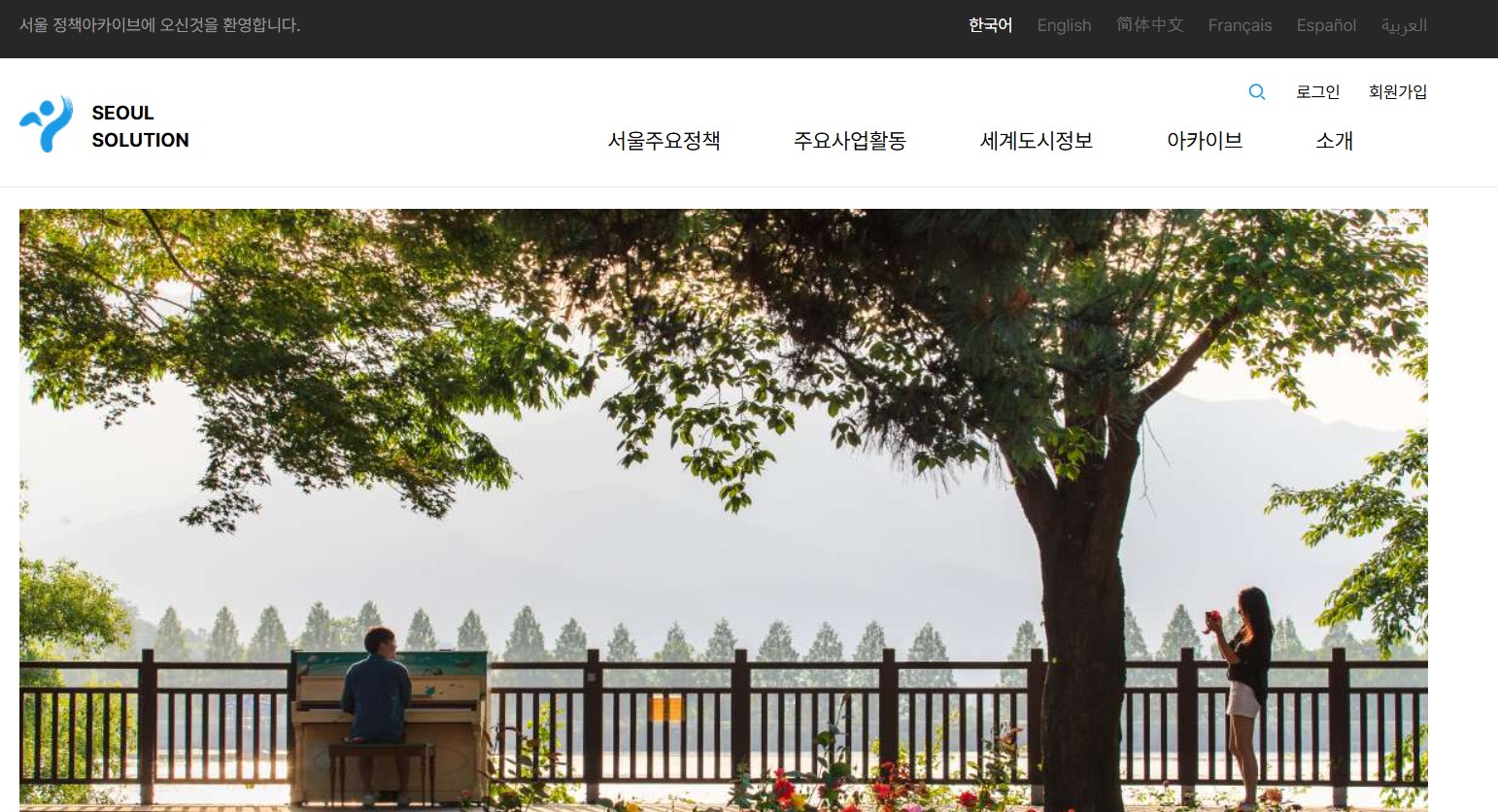 (1) 웹사이트 방문: 브라우저에서 서울시 정책 아카이브(https://seoulsolution.kr/ko)에 접속합니다. 서울시 대표 누리집 상단 메뉴에서도 링크를 찾을 수 있습니다.