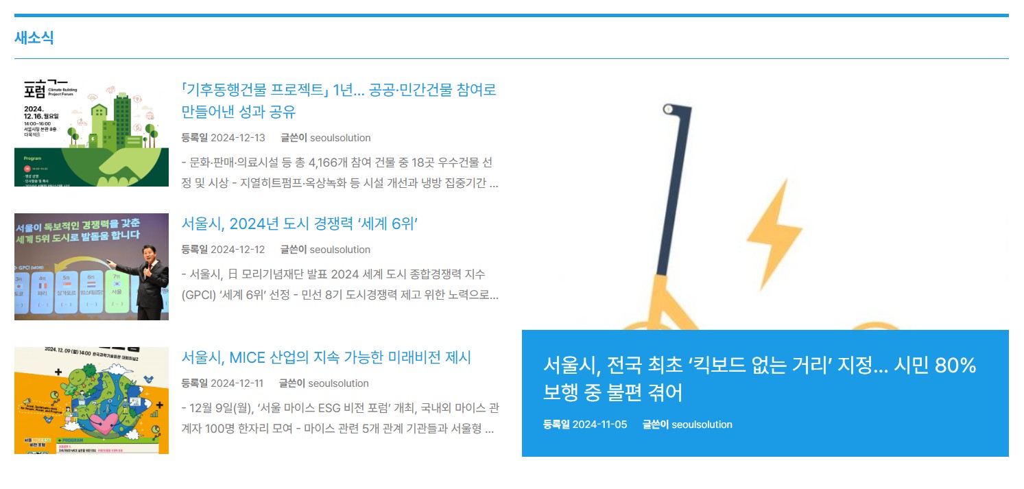 (3) 추천 정책: 메인 화면에서 서울시가 선정한 밀리언셀러 정책이나 최신 정책을 먼저 확인할 수 있습니다.