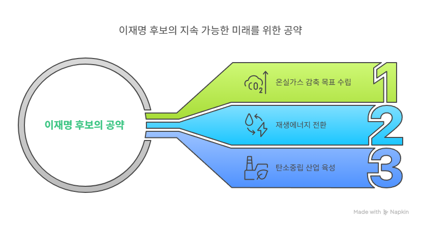 ■ 공약 요약: 온실가스 감축 목표 수립, 재생에너지 전환, 탄소중립 산업 육성