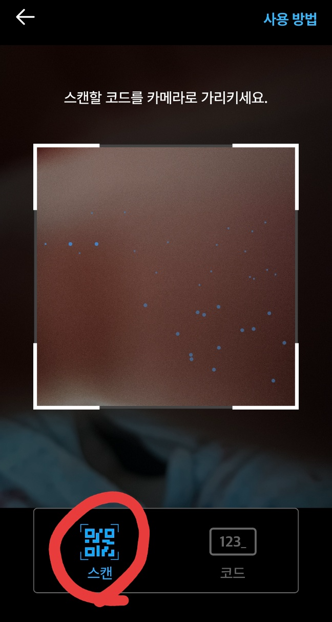 7) QR 코드 또는 6자리 코드 입력: TV 화면에 나타나는 QR 코드를 핸드폰으로 스캔하거나, 6자리 인증번호를 입력합니다.