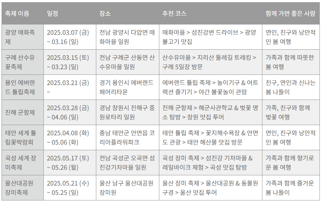 1. 2025 봄꽃 축제 일정, 추천코스 한 눈에 알아보기