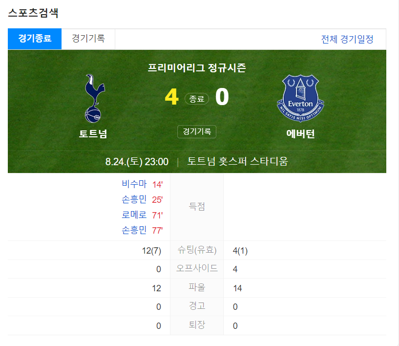 오늘 손흥민 선수가 소속되어 있는 토트넘 홋스퍼와 에버턴의 경기를 보셨나요? 전반 25분과 후반 77분에 손흥민 선수가 멋진 2골을 만들어 내 4대 0의 대승을 거두었습니다.