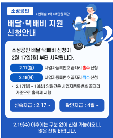 1. 소상공인 배달비, 택배비 지원금 지급일