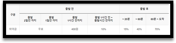 · 출발 60분 후 ~ 도착까지 : 요금의 70% 위약금 부과