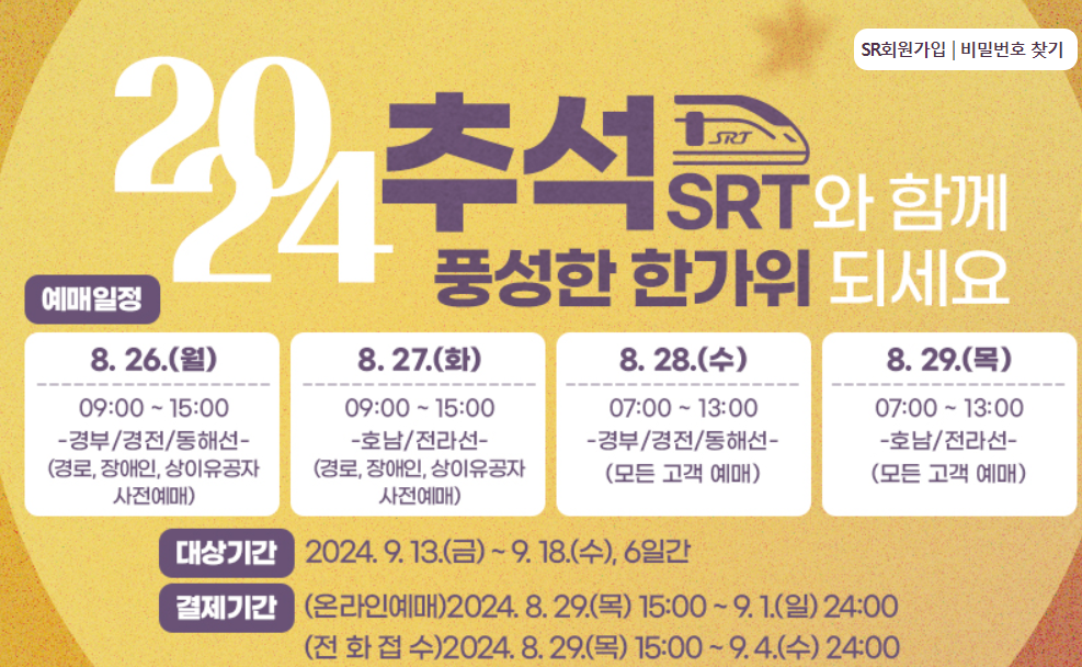 1. SRT 추석 열차 예매 기간