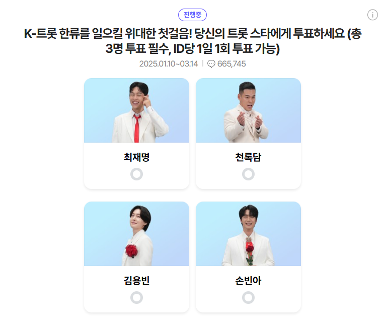 '미스터트롯3'는 K-트롯 한류 열풍의 첫걸음을 내딛는 프로그램인 만큼, 앞으로 어떤 참가자가 대한민국 트로트계를 이끌어갈 주역이 될지 기대가 되는데요, 매주 목요일 밤 10시에 방송되는 '미스터트롯3'에 많은 관심과 응원 부탁드려요!