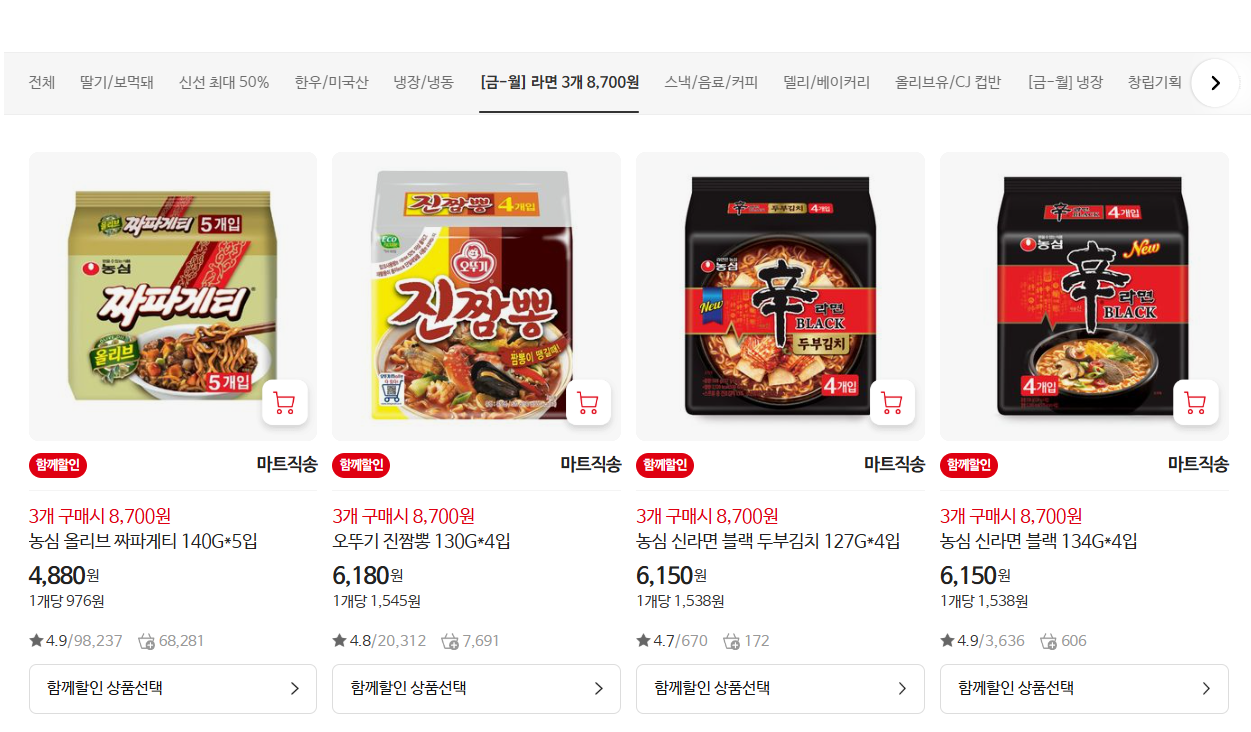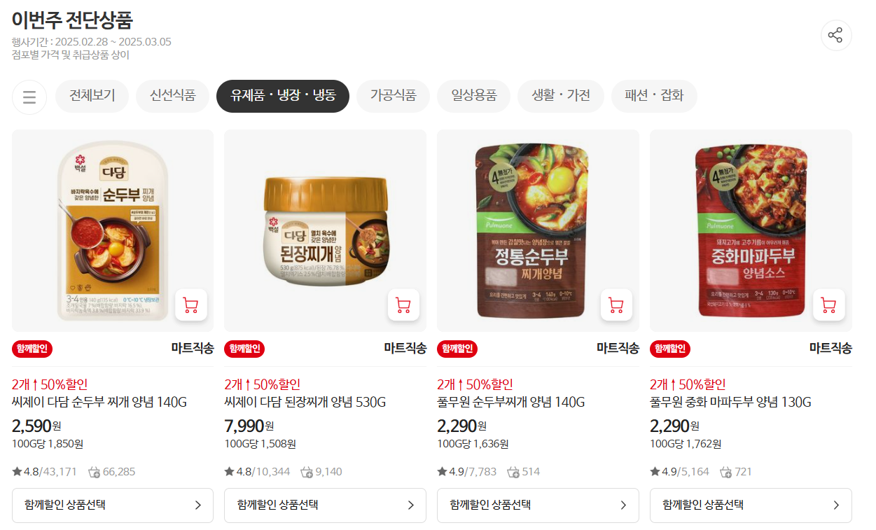 3. 신선식품, 가공식품, 간식류도 풍성한 혜택!