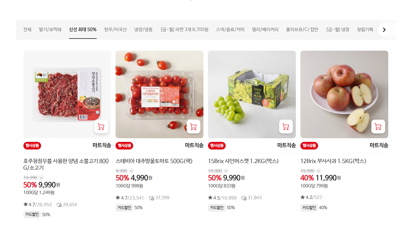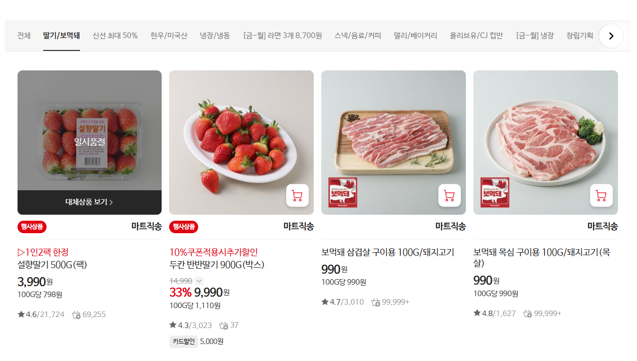 2. 1주차 파격 특가! 삼겹살, 계란, 통닭, 딸기, 한우까지!