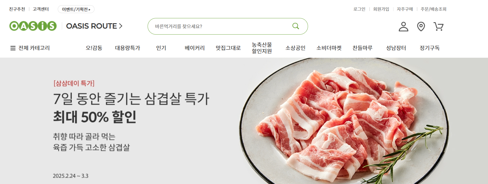 - 오아시스마켓: 국내산 한돈 부위 최대 50% 할인