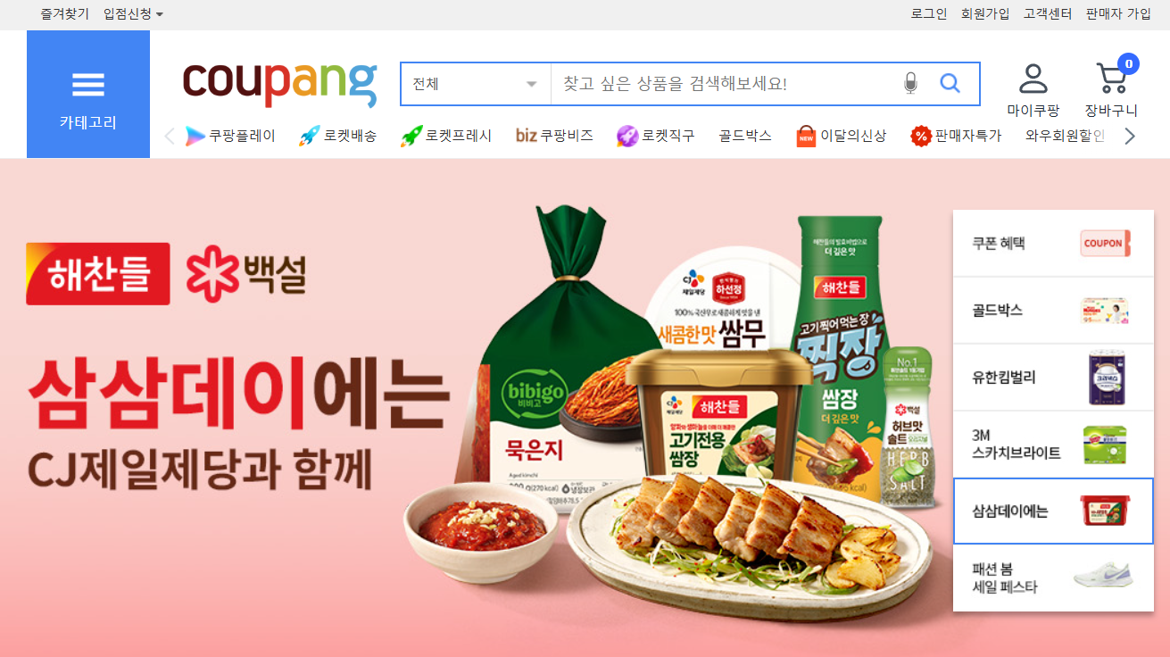 4. 온라인 쇼핑몰, 집에서 편하게 삼겹살 파티